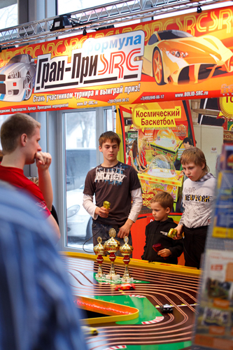 Наши сотрудники доставят аттракцион в любую точку Москвы, Санкт-Петербурга и пригородов. Организуют для вас и ваших гостей турнир с любым количеством участников. Аттракцион "Гонки Трассовых Автомоделей" создан для эксплуатации в различных зонах отдыха, а также для проведения мероприятий с участием посетителей развлекательных центров, корпоративных, детстких и иных праздников. Принять участие в шоу-соревнованиях может неограниченное количество участников с распределением их на количество заездов. Одновременно соревнуются 4-5 человек в зависимости от количества дорожек. Для заездов на корпоративных соревнованиях не нужны жетоны или карты оплаты, достаточно нажать на кнопку старта. Время одного заезда – 2 мин 40 сек (возможна регулировка по желанию заказчика). После окончания заезда на табло каждой дорожки высвечивается количество пройденных кругов и лучшее время за круг. По этим результатам определяется победитель заезда. Таким образом, проводится необходимое количество заездов, в каждом из которых определяется победитель. Все победители выходят в финал. Во время отборочных заездов незадействованные участники и зрители могут "болеть" за соревнующихся, а могут воспользоваться фуршетом или "шведским столом", которые рекомендованы для проведения подобных мероприятий. Кроме того, возможна организация ставок на определение лучшего участника заезда. По итогам финального заезда определяется победитель, которому вручается приз, возможно тематический, в "формате" места проведения или организации (в случае корпоративного мероприятия). Возможно выявление победителей в различных номинациях или группах. Например, "Лучшая гонщица" (женские заезды), "Первый чайник" (для не умеющих водить реальные автомобили), "Ветер в ушах" (для участника, у которого чаще всего вылетела модель с трассы) и, конечно, основное звание "Лучший гонщик". Для проведения данного мероприятия рекомендовано привлечение ведущего не только для общей организации соревнования, но и для принятия ставок, комментариев и т.д.