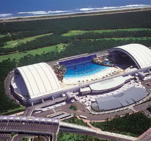 А вот самый большой в мире аквапарк расположился на японском острове Кюсю. Ocean Dome – это огромное здание, рассчитанное на 10 тысяч посетителей. Крыша аквапарка оснащена раздвижным механизмом для того, чтобы открываться в солнечные погожие деньки и закрываться во время непогоды.
