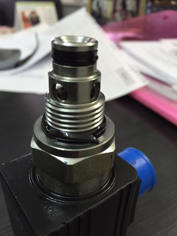 Тут же эксперт набрал изготовителя аттракциона и получил разрешение на вскрытие гидроустройства без нарушения гарантии. Ранним утром шел проливной дождь, техническая служба парка, несмотря на ненастье и выходной день, в полном составе приняла участие в поиске причины открытия поручня. После разборки было обнаружено разрушение уплотнительного кольца направляющей золотника гидроклапана на этом устройстве. Далее было согласовано вскрытие остальных 11 гидроустройств на всех посадочных местах и подобная проблема была выявлена на 10 устройствах из 12. В ходе проводимых работ было выявлено наличие посторонних частиц в масле, что могло послужить причиной в нарушении работы гидроклапана. При наличии частиц в масло происходит неплотное прилегание золотника гидроклапана, что может повлечь непреднамеренное движение жидкости через клапан и он перестает выполнять свою роль – гидрозамка и поручень может открыться, т.к. жидкость свободно перемещается по системе.