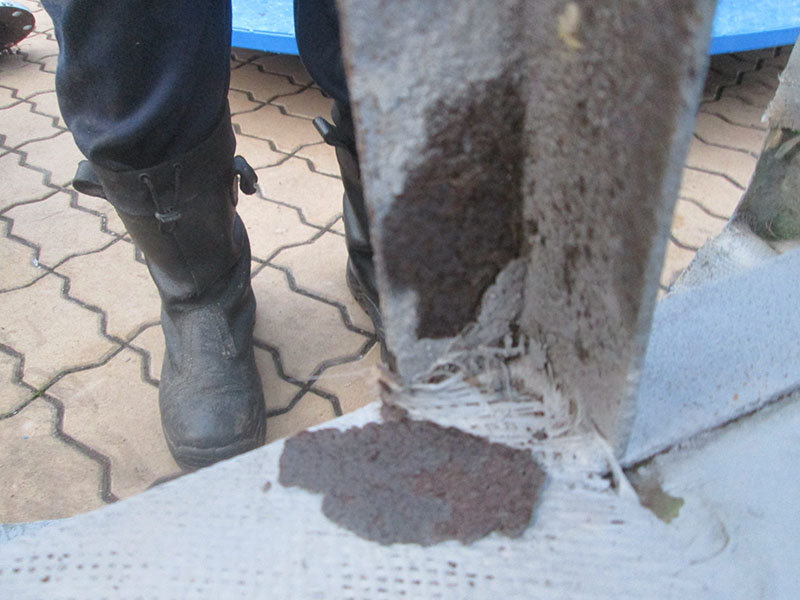 И так осмотр показал следующее: 1 аттракцион – на элементах металлоконструкции различных элементов аттракциона наблюдается язвенная коррозия и «новый» металл отслаивается кусками, пластик имеет множество необработанных участков, сколов, трещин и разрушений и при сборке образуются большие зазоры. При вскрытии крышки борно двигателя для подключения оттуда посыпался окисел, а внутри двигателя отслоилась краска. Разрушены сварочные соединения крепления элементов каркаса посадочных модулей. Отсутствует токосъемный узел в центральном узле и аттракцион даже в собранном состоянии вряд ли удастся запустить в работу.