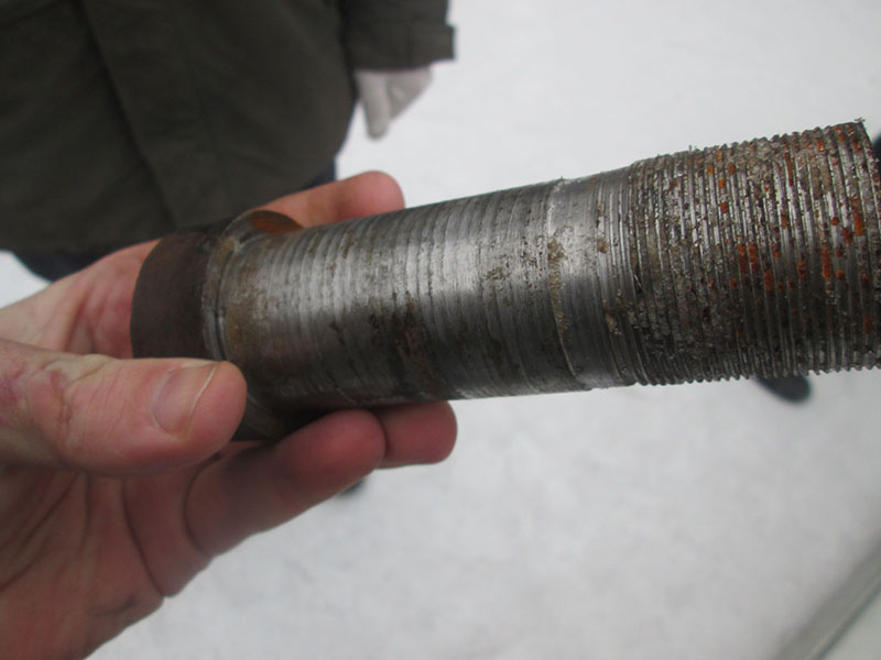 Вторая проблема, которая была выявлена при установке и испытании устройств: верхний и нижний пальцы крепления гидроцилиндра были зафиксированы шплинтами пружинными. При неоднократном открытии и закрытии страховочного поручня произошло выдавливание шплинта из отверстия и фиксирующий палец остался без фиксации и позже выпал, гидроцилиндр перестал выполнять свою роль. После этого все шплинты пружинные были заменены на обычные шплинты, которые прекрасно справляются со своей функцией и по сей день.