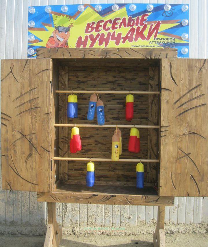 Призовой аттракцион " Веселые Нунчаки " можно использовать в разные периоды года в городских парках, пляжных зонах и на набережных курортных городов, на открытых городских и станичных площадках во время проведения ярмарки и массовых гуляний, а так же на выездных тематических праздниках.