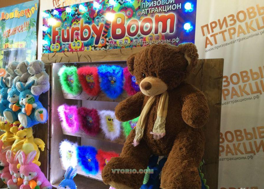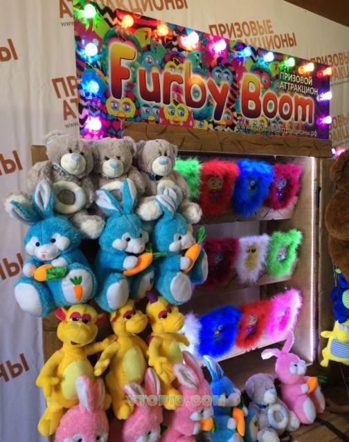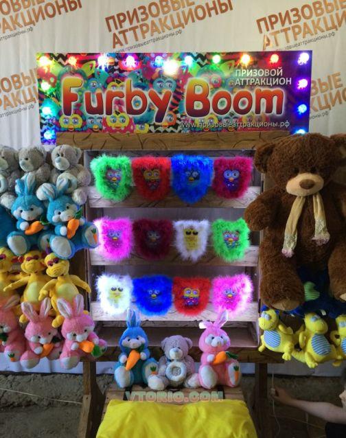 Фёрби Бум: новинка сезона-2015г. Очень смешной аттракцион и очень популярный. Аттракцион бросковый на 1 человек. Принцип игры прост: Игрок с помощью шести мягких битков пытается сбить 6 фёрби, приз в любом случае, размер приза зависит от количества попаданий. Расстояние броска вы регулируете сами как впрочем, и количество бросков. Игра построена на чистом везении. Попасть не сложно, но может далеко не каждый. Аттракцион занимает мало места, складывается, удобен при перевозки. Выполнен, как и все наши аттракционы в стиле застарелого дерева и имеет собственную подсветку. Цена аттракциона в минимальной комплектации - 38.000р. В минимальную комплектацию входит: Игровой короб с внутренней подсветкой - 1шт.; Упорные ноги - 2шт; Цветные правила игры - 1 шт; Технический регламент - 1шт.; Битки для бросания по целям - 6шт. По желанию, дополнительно на Ваш выбор можно доукомплектовать: Верхняя свето - цветовая вывеска RGB - 1шт. - цена договорная. Верхняя цветовая вывеска - 1шт. - 4000р. Ставни деревянные в застарелом стиле с накладными петлями, ручками и щеколдами под старинную ковку - 2шт. - 6000р. Битки для бросания по целям (мягкий мячик) - 1шт. - 100р. Фигурки - мишени 400р. 1 шт. (только для тех кто уже приобретал данный аттракцион) Вес: 40 кг. Высота: 240 см. Ширина: 190см. Глубина: 75см.