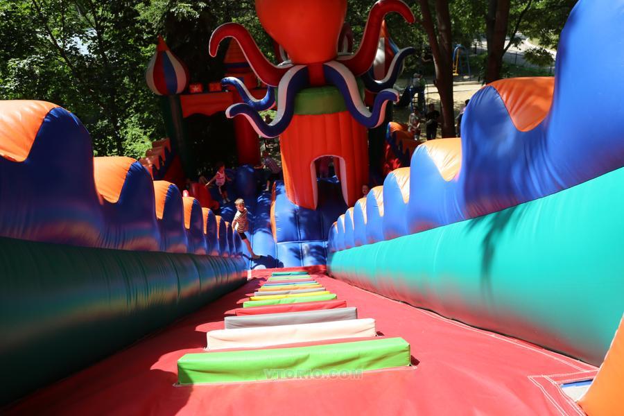 - Оборудование » Надувные аттракционы » Продам » Батут с горками Микки-Маус