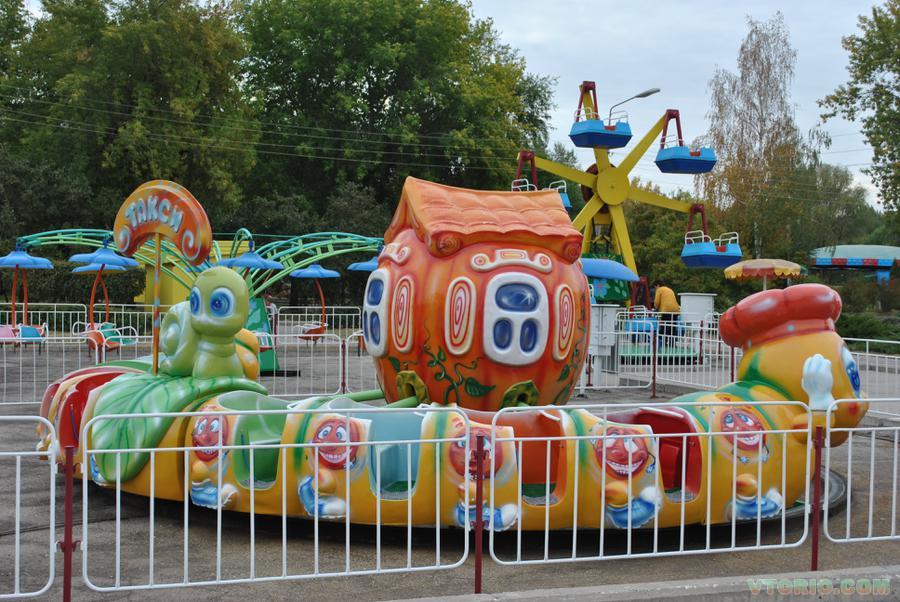 Центральная часть "Червячка" изготовленна, исходя из общего замысла с верхней табличкой "Такси". Доступ к электродвигателю обеспечивается посредством открывания дверци в виде "листика", для чего предусмотренны петли. Для входа и выхода пасажиров с внешеней стороны имеются проемы, которые закрываются страховочным ремешком. По желанию потребителя "Червечек" оборудуется мигающими разноцветными лампочками, что придает аттракциону дополнительную привлекательность, особенно в темное время суток.