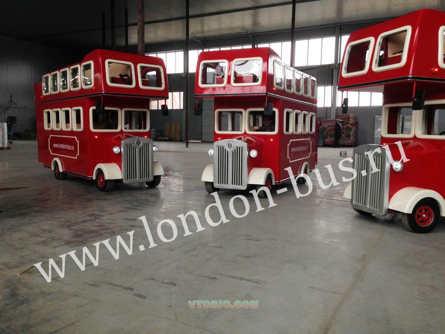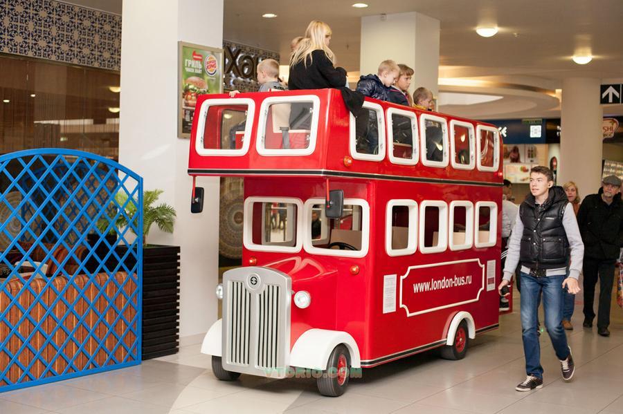 Лондонский автобус - это удобство эксплуатации, безопасность, а так же рекламная площадь. Автобус практически не требует серьезного ухода. Имеет систему антистолкновения. Автобус сконструирован таким образом, что дает возможность размещать рекламную информацию. Технические характеристики: Длина: 420 см Ширина: 125 см Высота: 240 см Вес: 900 кг Максимальная скорость: 7 км/ч Работа в автономном режиме: 12 ч.