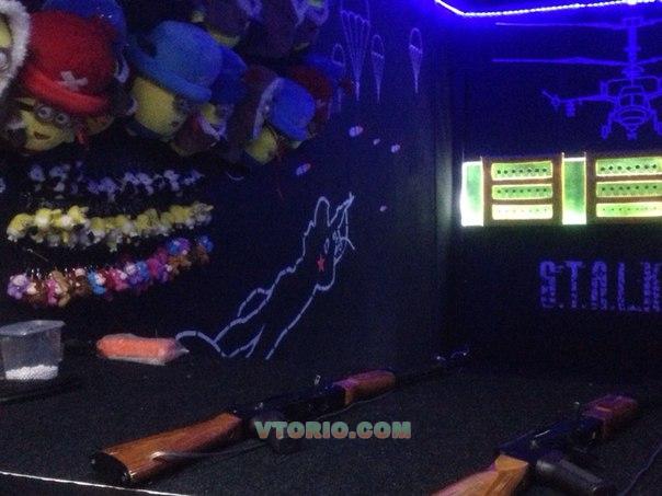 ТИР: Представляет из себя автоматизированную систему учёта выстрелов от контролёра! 3 секции мишени с автоматически откидными целями! 3 автомата Калашникова и Американская (М-ка). увидев на месте можно влюбиться в этот ТИР- как всё красиво оформлено!