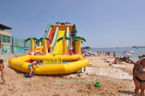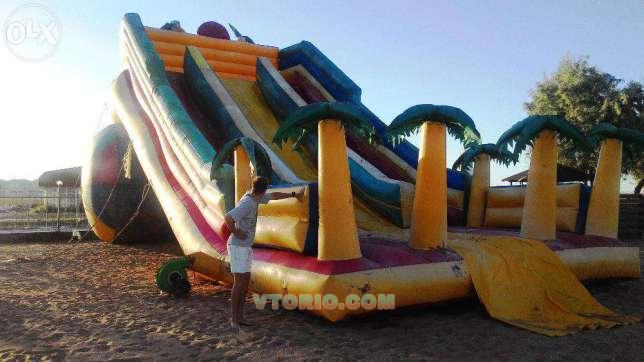 Горка батут. Высота 7 м., ширина 6 м., длина с бассейном 18 метров. В комплект войдёт, новый бассейн,новый компрессор, водный насос, лестница. Консультация по установке. Горка производит фурор среди детей. Состояние нормальное, чистая, швы подшиты, вне швов нет повреждений. Производили в Харькове, работаем с этим человек долгое время, делает очень качественно, материал Голландский(сейчас везде Китай).Цвет подвыгорел. Есть шви. Но для таких размеров отдаём почти даром. Перешли на более мелкие горки. Бассейну пол сезона, компрессору тоже. Проконсультирую по установке и прочему. Если вы не новичок в этом деле то поймете, что это отличный вариант. Находимся в Крыму. Вес горки 600 кг. Видео https://vk.com/videos-91675632