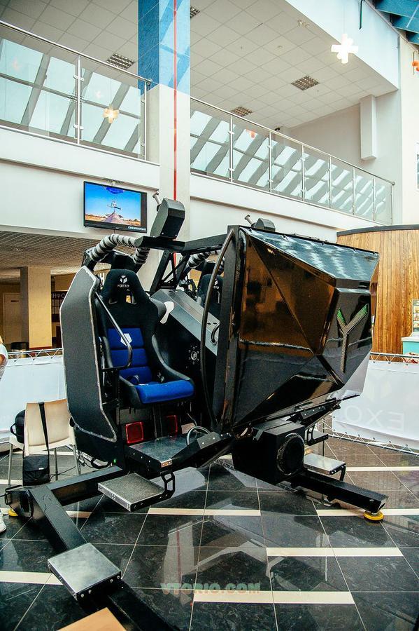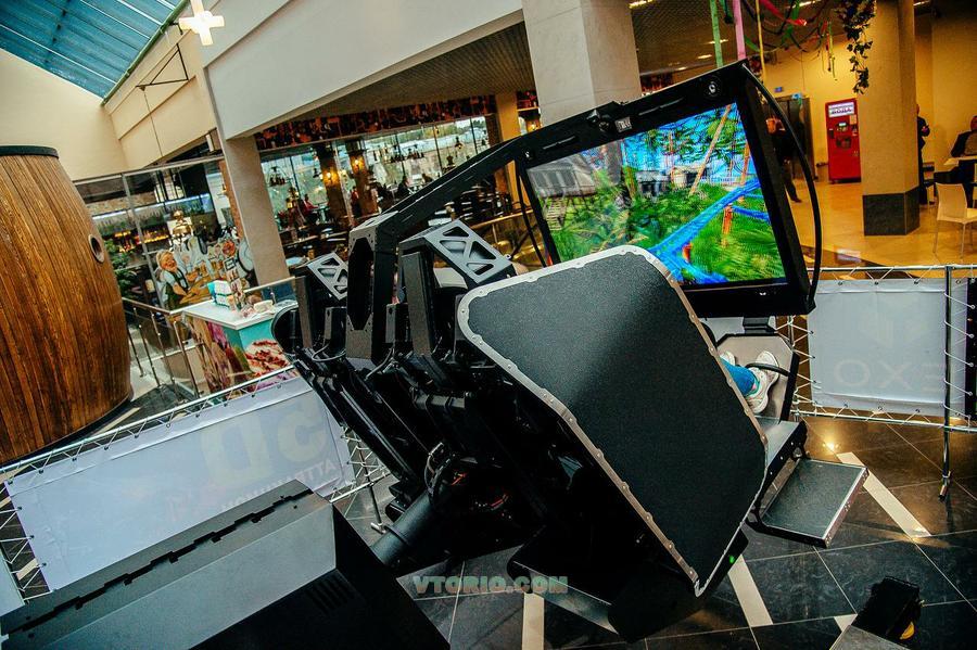 Игровой аттракцион Exo Skelet рассчитан на детей от 7 лет и взрослых. Это симулятор виртуальной реальности с двухместной платформой, которая вращается в нескольких плоскостях (в одной из них — на 360 градусов), а также большим экраном, транслирующим изображение в формате 3D. Каждое игровое место оснащено отдельным джойстиком для управления и стрельбы. Для посетителей аттракциона доступны американские горки, автогонки на футуристических суперкарах, воздушный бой за штурвалом истребителя или космического корабля, танковые баталии и многое другое. Посоревноваться в меткости при стрельбе по различным мишеням могут одновременно 2 игрока, но играть можно и одному.