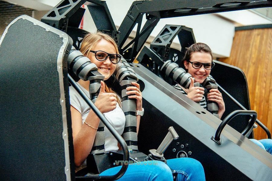 Для посетителей аттракциона доступны американские горки, автогонки на футуристических суперкарах, воздушный бой за штурвалом истребителя или космического корабля, танковые баталии и многое другое. Посоревноваться в меткости при стрельбе по различным мишеням могут одновременно 2 игрока, но играть можно и одному.