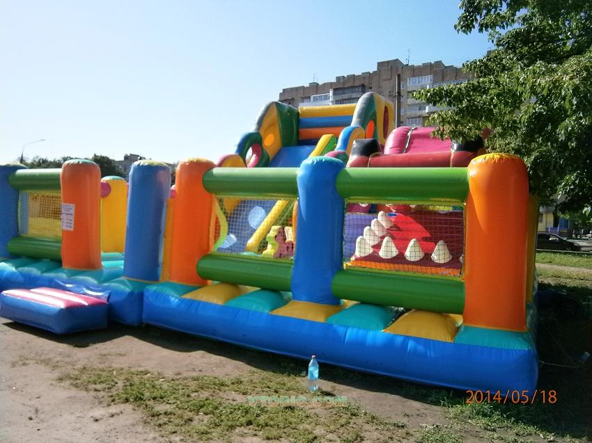 Новый батутный комплекс собачка, выполнен из пвх 630-800грамм на 1м2. Размер Д*Ш*В 14*8*6, стартовая площадка 4.5м. Важным моментом в комплексах, которым влияет на цену является размещение аэроробота (в периметре комплекса или за ним)На фото 3 и 4 показана разница. Спуск повышенной прочности с лаковой структурой, съемная лестница. Горка шитая с проклеенными швами по всей батутной части. Сами занимаемся прокатом, горки служат по 5 лет без ремонта при правильной эксплуатации (Зимовка, пуговицы на джинсах, перегрузы и т.д.). Если нет в сети, значит уехал на производство. Если нет в сети, значит уехал на производство. yursan@ukr.net Или на Укр номер +380988488061