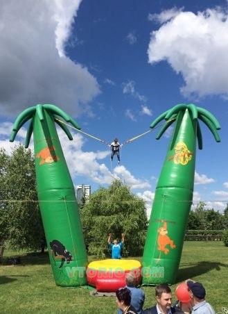 Аттракцион две пальмы очень оригинальный. Высота аттракциона около девяти метров. Пользуется большой популярностью у детей. Специальные ремни регулируются под детишек разного возраста. Подходит для возраста от пяти до двенадцати лет. В комплект входит дополнительные резинки для аттракциона. Устанавливается за 15-20 минут.