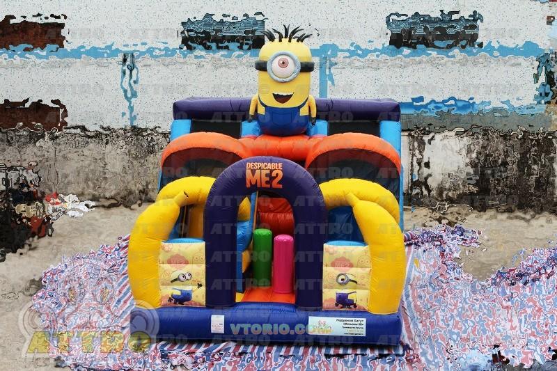 Под заказ - изготовление. Размеры 6 × 5 × 5,5 м Вместимость 12 Высота горки 3 м Вес 180 кг Материал ПВХ: толщина 0,55 мм, вес 690 гр/м2, плетение 1000 ден, не горит, не выцветает Комплектация: вентиляторы, прочная сумка, ремнабор (материал, клей), сертификат, паспорт по ГОСТ Элементы горка, место для бега, место для прыжков, препятствия, фигуры игровые Тематика популярные мультики, эксклюзив, Миньоны Гарантия 2 года Доставка В любой город РФ, Казахстан и Белоруссия