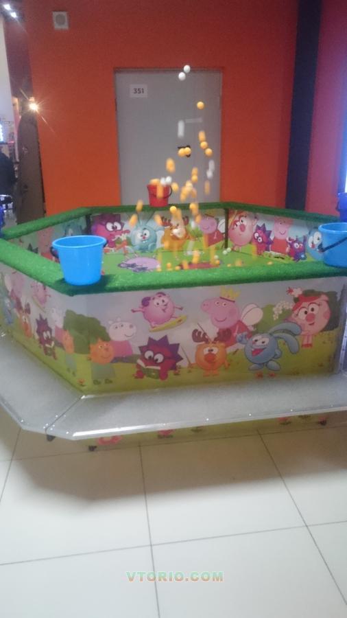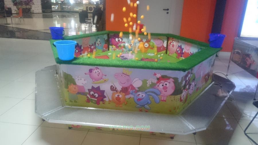 Аттракцион Смешарики без крыши , 6мест .Смешарики - очень захватывающие развлечение для детей возрастом от 3 лет.Принцип аттракциона основан на детском азарте и желании детей наловить как можно больше разноцветных шариков, которые с помощью потока воздуха по центру бассейна взлетают вверх. Дети в это время с помощью специального сачка должны поймать как можно больше летающих смешариков после чего они могут сложить свой улов в красочное ведерко. Радость для деток еще в том, что за хороший улов все детки получают призы!