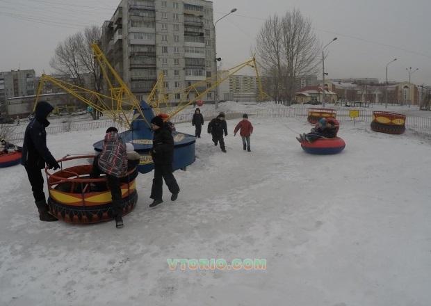 Карусель приводят в движение два-три эл.привода 220В. каждый по 2 кВт. Снежное полотно для бубликов 18 метров в диаметре, по ограждению 20 метров.