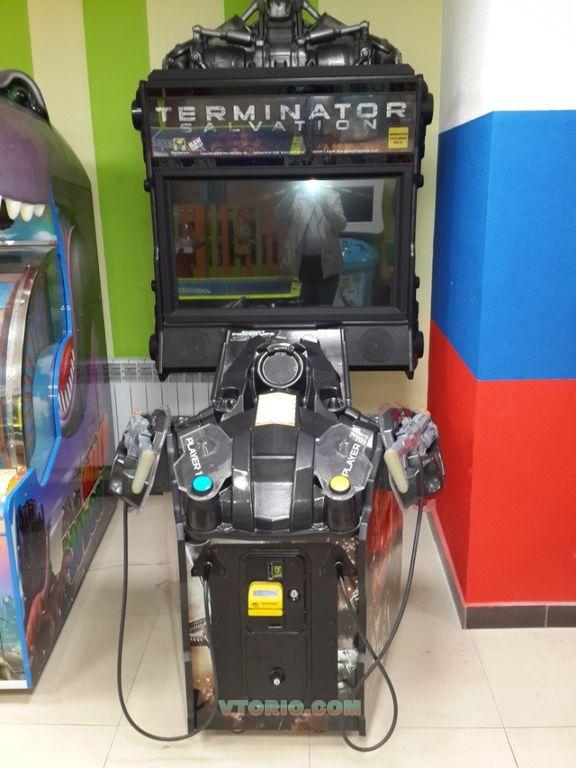 Ширина: 109 см Глубина: 157 см Высота: 267 см Вес: 286 кг Дата ввода в эксплуатацию оборудования — апрель 2013 года. Симулятор стрельбы, разработанный по мотивам фильма "Терминатор". Привлекательный корпус игрового аппарата Terminator Salvation с фигурой Т-600 с горящими глазами не позволит пройти мимо. Великолепная графика и звук. Игроки могут пополнять свой арсенал гранатами, дробовиками, ракетными установками и мини-пушками. На 2-х игроков.