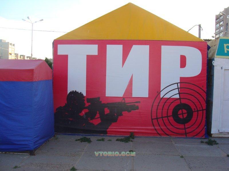 2.Палатка тентовая размер:ш.д.в.-3.8.3.-цена 80 т.р., с оборудованием под тир.цена - 100000.