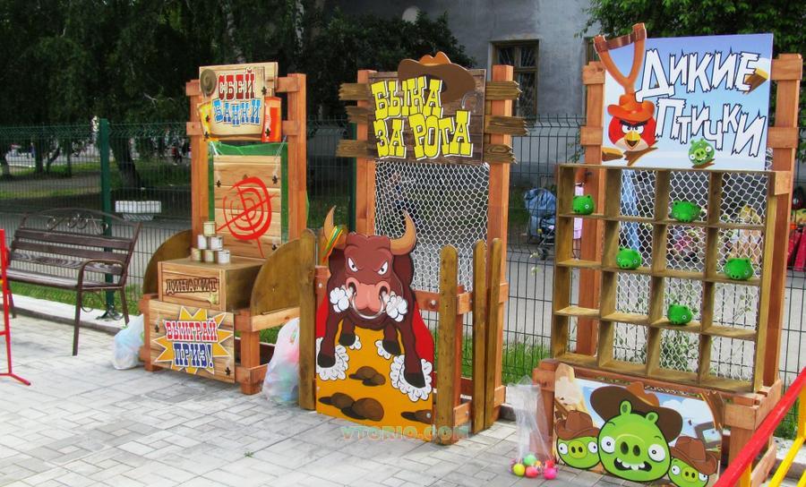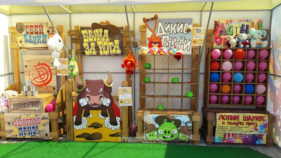 Целый комплекс из 4-х аркадных игр: Лопни шарик Сбей банки Дикие птички Быка за рога