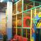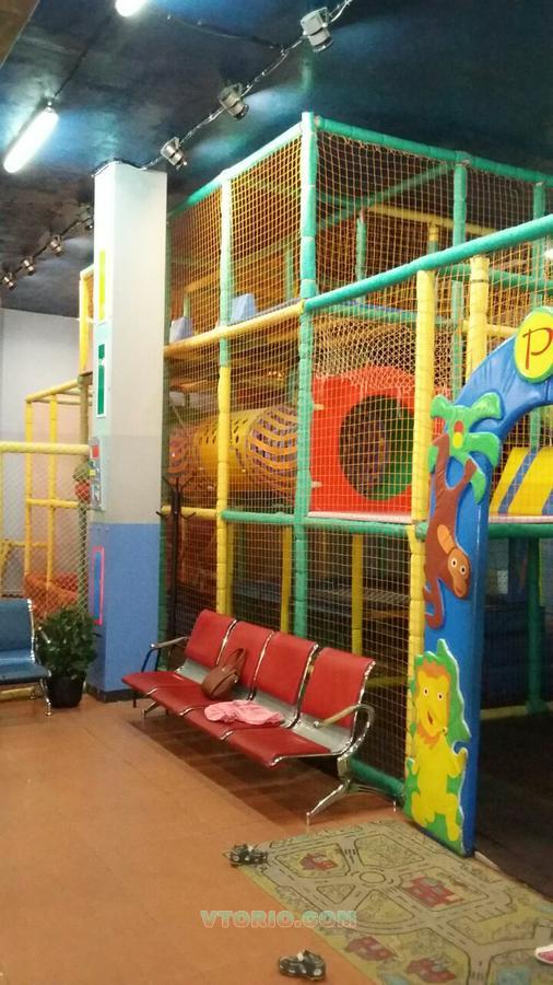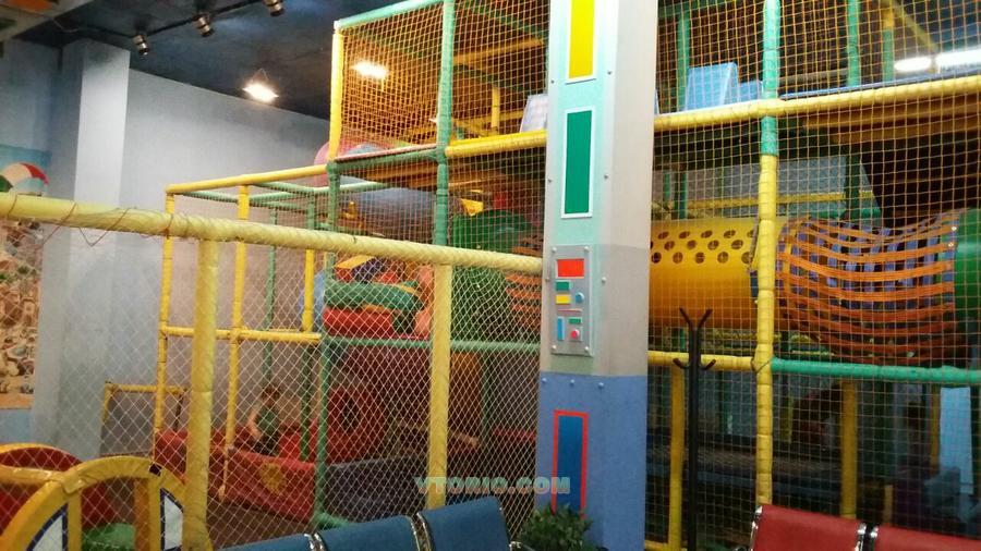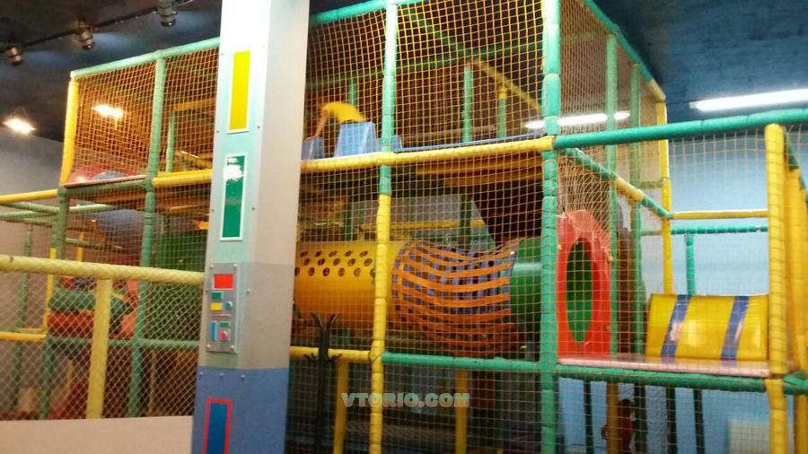 Детский игровой лабиринт 3-х этажный. Размер основного лабиринта 10,6 х 4,6 х 4,05м плюс пристройка 6,4 х 4,9 х 2м формирующая игровую зону. Общий размер лабиринта 11х10,68х4,05м; общ. площадь 1-го этажа - 116,6 м2. Имеет ковровое покрытие на нижнем уровне и маты на втором уровне. Оборудован пластиковой горкой, сухой бассейн, машинки, спортивный батут, препятствий треугольные и т.д.