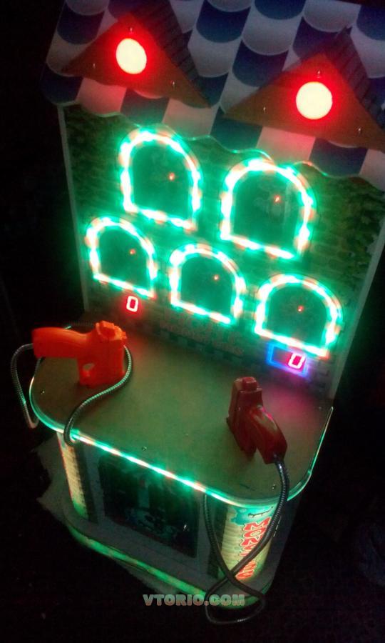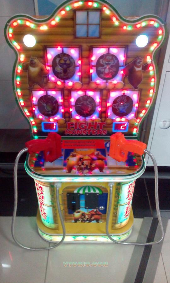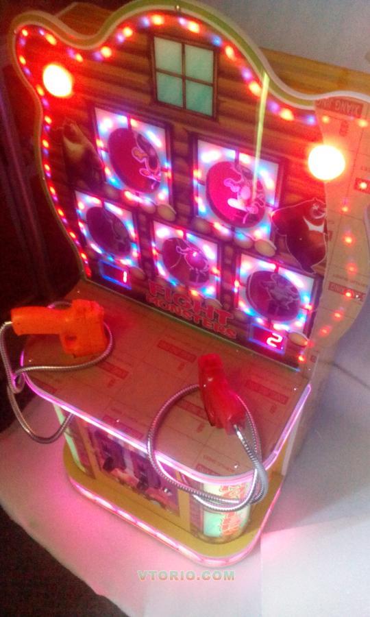 Продам детскую стрелялочку. Игра рассчитана на одного или двух игроков. Цель игры - за отведённое время стрелять из пистолетов по фигуркам в окошках. При попадании фигурка падает на несколько секунд и снова подымается. Игра на реакцию. Задача игрока набрать как можно больше очков. Очень яркий и привлекательный дизайн. Светодиодная подсветка по всей площади игрового автомата, что очень привлекает внимание детишек.