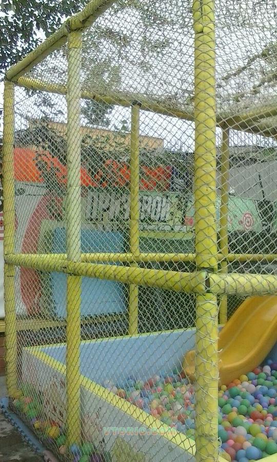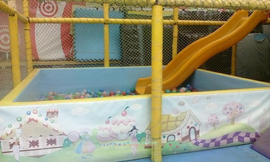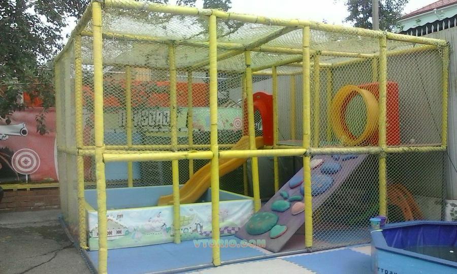 В комплекте: основание лабиринта (стальные трубы и соединительные хомуты), полы на 2 этаже, горка пластиковая, пластиковый модуль "арка", пластиковый модуль "переход", бассейн с хорошими твердыми бортами, шарики для бассейна, пол 2 см толщиной (плитки 1*1м)