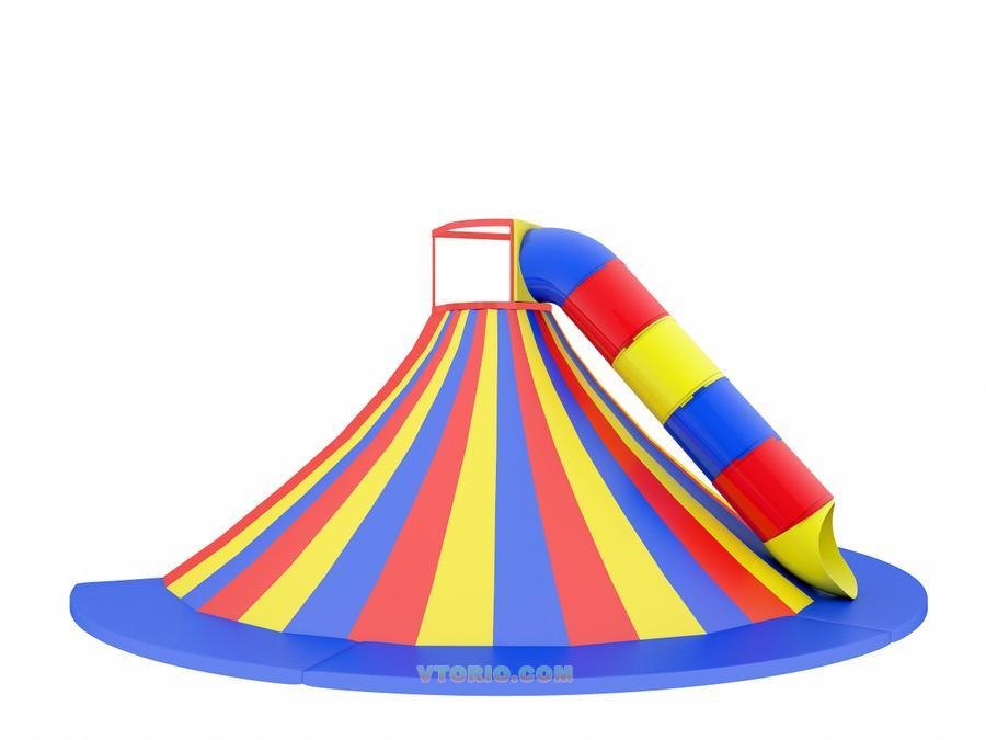 Горка – Вулкан 90°(высота 2,5 м) Получить на её поверхности травму невозможно, потому что все материалы мягкие и лишены острых углов. Площадка для скатывания находится на высоте 2,5 м. Она оборудована мягкими перилами во избежание падений. Цена указана без монтажных работ.