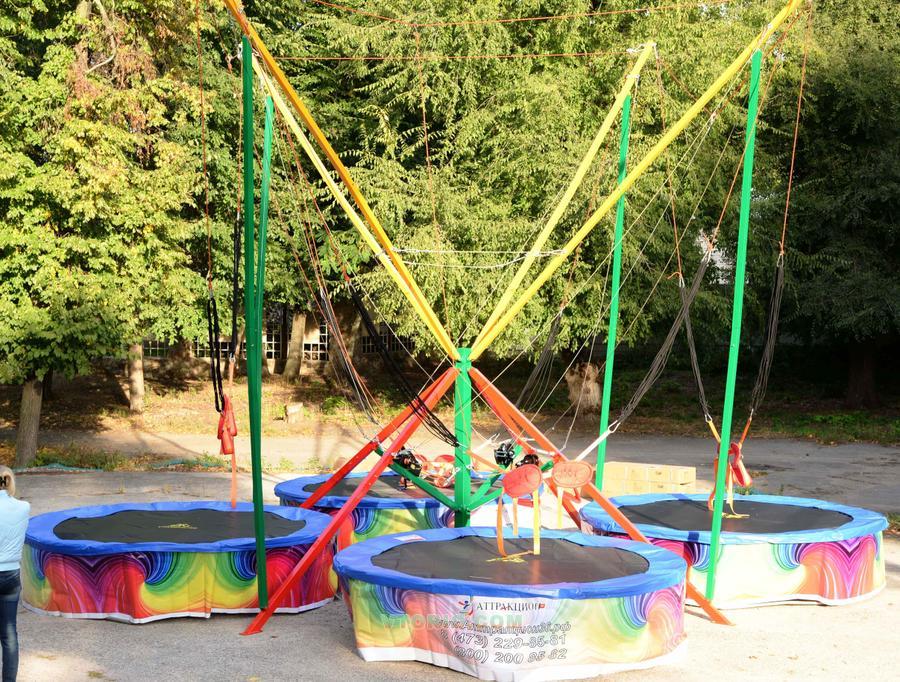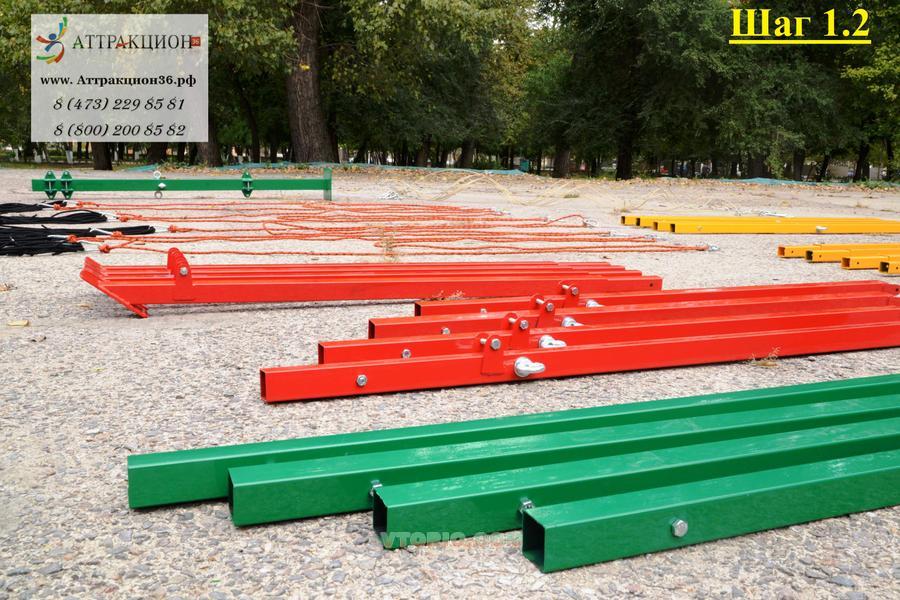 На металлоконструкции есть небольшие сколы по краске, которые никак не скажутся на работоспособности аттракциона. Батуты, овесы, пояса не распаковывались и не использовались, т.е. абсолютно новые.