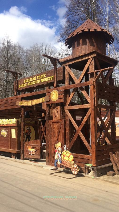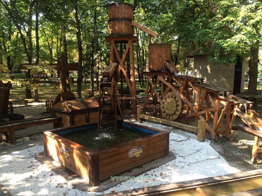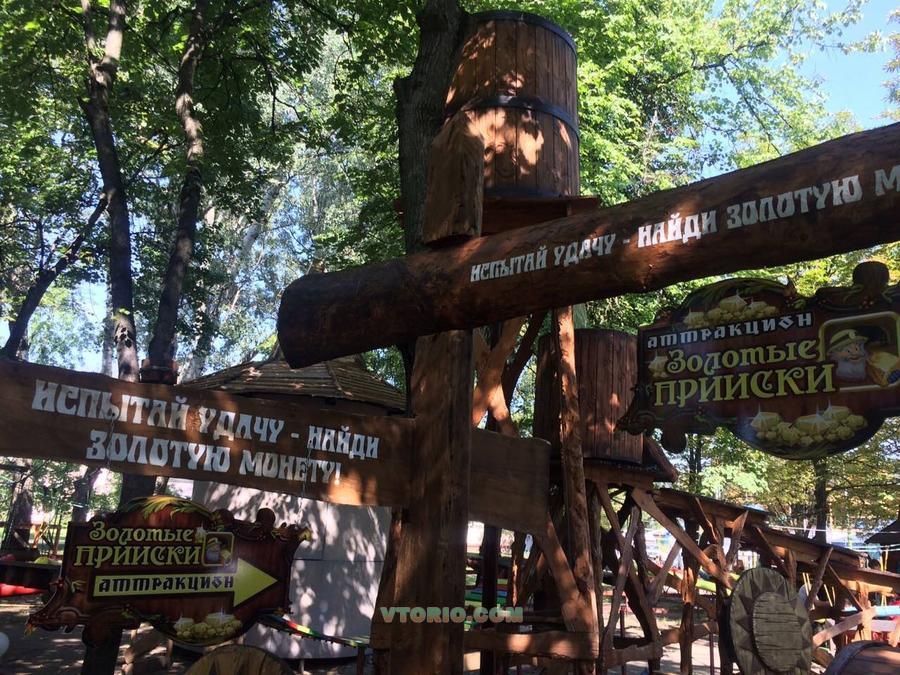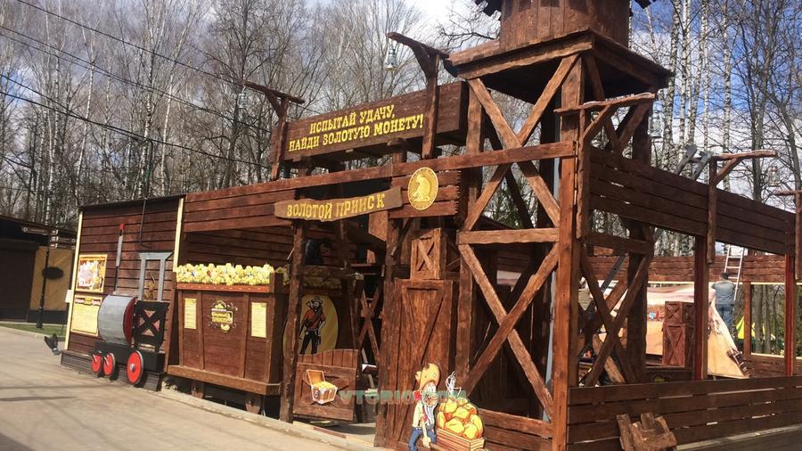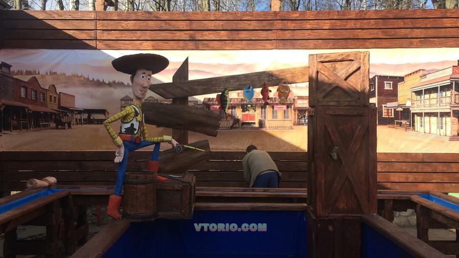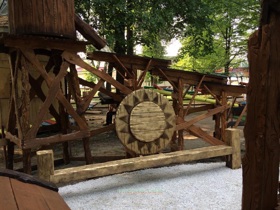 Декорации аттракциона ручной работы, выполненные из дерева.