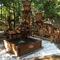 Бассейн для рыб с водяной мельницей.