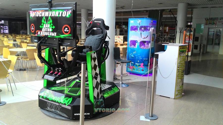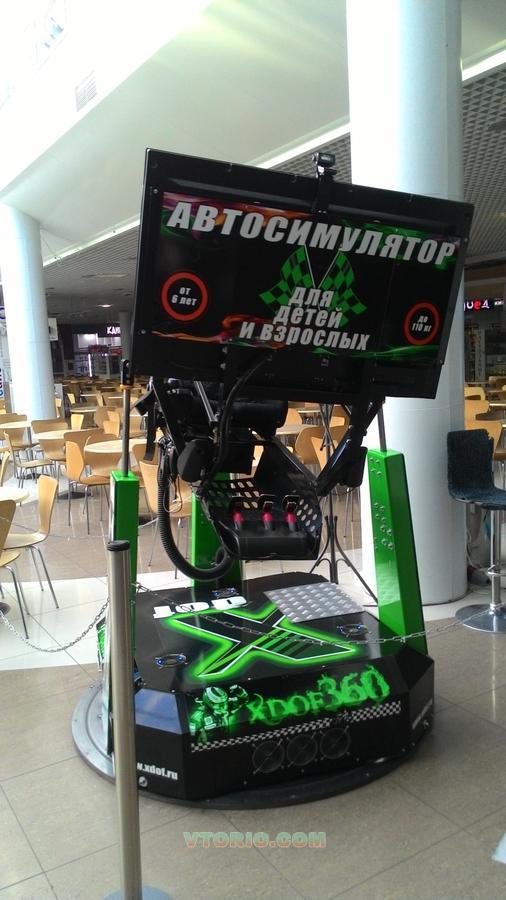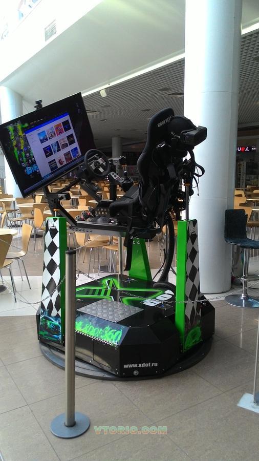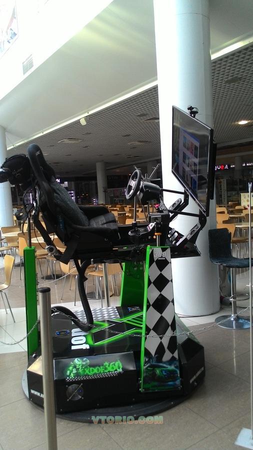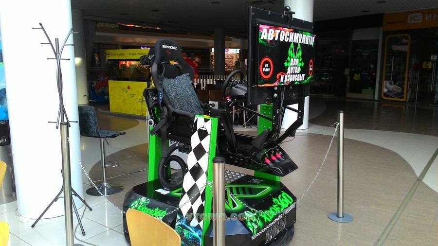 3d аттракцион-автосимулятор, 4 плоскости перемещения: вращательное движение, движение вниз-вверх, крены влево-право, назад-вперед. Имитация событий, происходящих с машиной в компьютерной игре. Линейные перемещения - 0,5 м, вращение - 180 градусов.