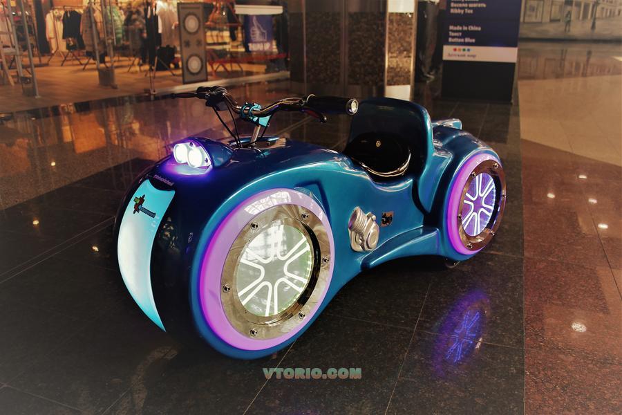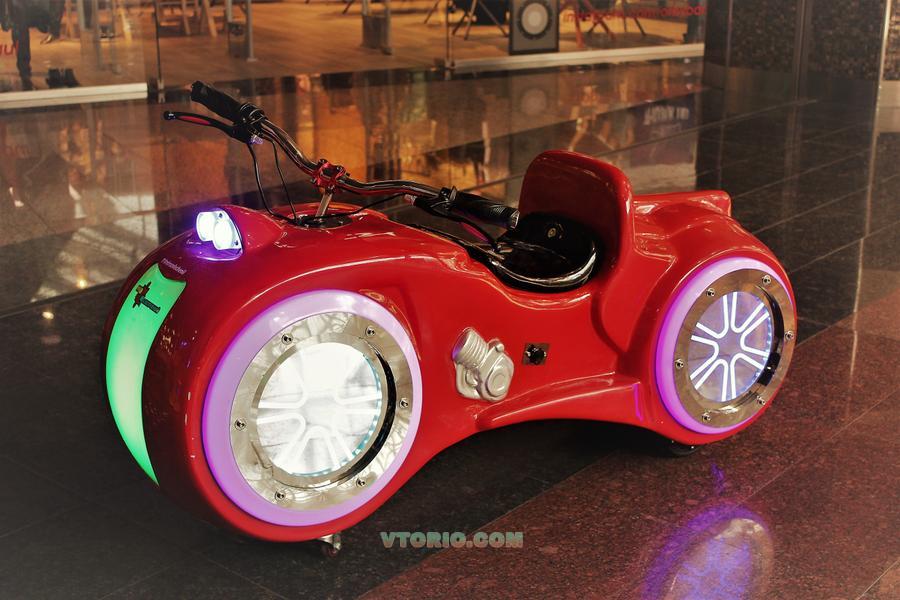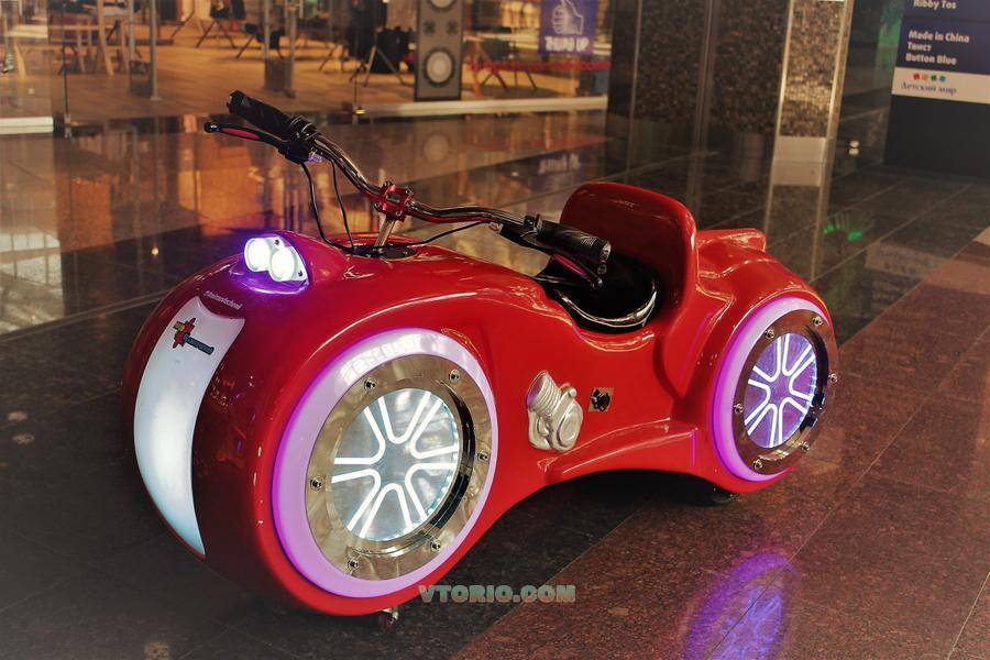 Продам электромобиль "МОТОЦИКЛ". Эксплуатируется в торговом центре с января 2017г. Яркий современный электромобиль со световым оформлением и звуковыми эффектами имитирующими звук работающего мотоциклетного двигателя. Запускается с пульта. Имеется электронный счетчик запусков. Регулируется время, скорость катания, громкость звуковых эффектов. Для эксплуатации необходима ровная твердая поверхность. Работает от 2х 12в аккумуляторных батарей. Габариты 1400х500х620. Вес 60кг.