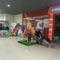 стол ( покрытие искусственный газон , банеры ) , часть игрушек отсутствует .