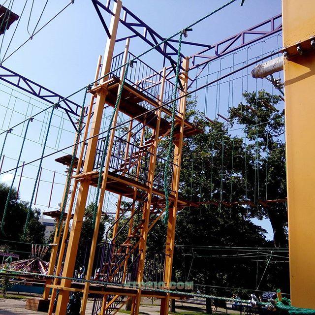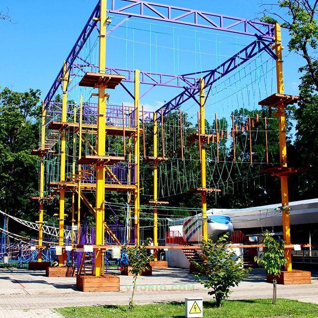 Особенности парка: Три независимые трассы разной сложности; Гарантированная безопасность (непрерывная линия страховки); Каркас парка выполнен из металла- что является гарантией долгой службы, настил площадок - террасная доска;