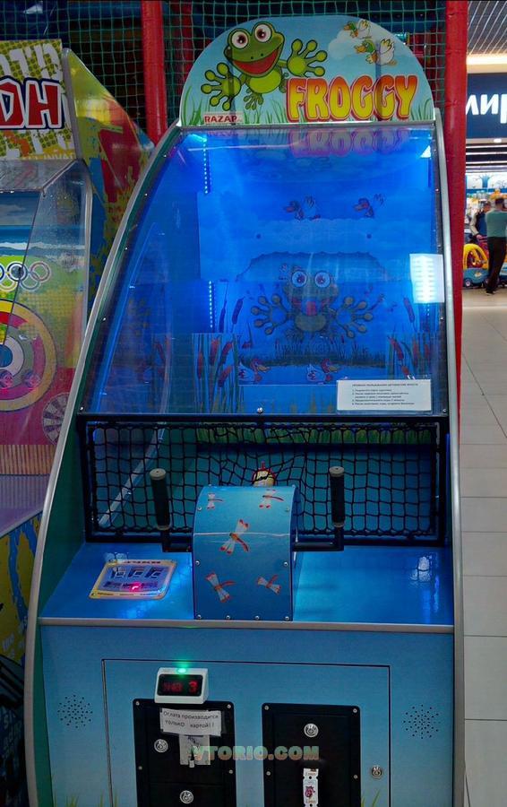 Пневмотир «Froggy» аппарат игровой. Задача игрока из пневпушки попасть в двигающиеся фигуры .Выдаются призовые билетики ,музыкальное сопровождение .