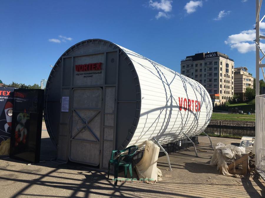 Вортекс (Vortex) - это современный научно-познавательный экспонат. Его предназначение изначально было для проверки вестибулярного аппарата человека. Благодаря своей уникальности экспонат пользуется большой популярностью как в науке, так и в сфере развлечения. Конструкция Вертекса состоит из цилиндрического туннеля длиной 4 метра , внутри которого находиться мост, а цилиндр вращается вокруг моста. Экспонат находиться в закрытом от света помещение или боксе, на цилиндр наносятся различные изображения. Самое популярное из которых - космос. В нижней части моста расположены ультрафиолетовые светодиодные лампы, благодаря которым изображения , окрашенные флуоресцентной краской ,начинают светиться.