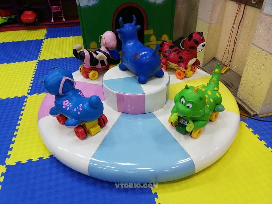 Скорость вращения карусели очень медленная, это обеспечивает безопасность детей во время игр.Возраст: от 2 до 4 лет.