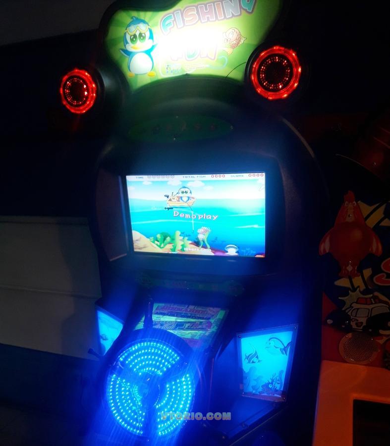 В продаже редемпшен Fishing Fun. Детский игровой аппарат с выдачей призовых тикетов (билетиков). Необходимо с помощью штурвала управлять крючком и ловить рыбок. Аппарат имеет яркий привлекающий внимание экран, звуковые спецэффекты и современный дизайн. Так же другие симулятоы. Прайс по запросу.