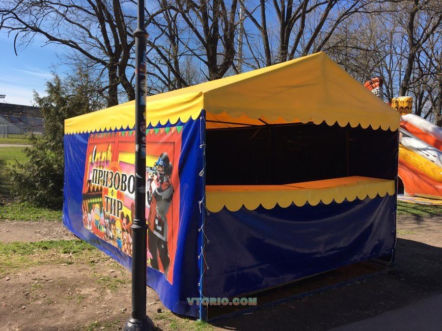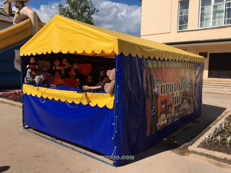 Продается тир призовой. Размеры Д6хШ3хВ2,2. В комплекте идут: каркас сборный, палатка с 2 баннерами нашитыми,стол, подставка, 3 комплекта электрических мишеней( с автоподьемником на пульте) работают от 12В. Сетка для игрушек, пулеуловитель. тир можно ставить как стационар так и брать на выезды. Закрывается спереди тканью, можно по желанию установить козырек на подьемниках.