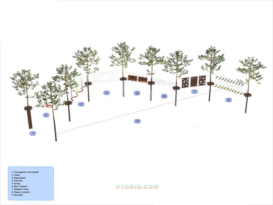 Этот веревочный парк превосходно сочетается с другими видами аттракционов, детскими площадками и т.п. Если у вас ограниченный бюджет и вы не знаете с чего начать, то начните с этого парка, чтобы убедиться в привлекательности его внешнего исполнения.