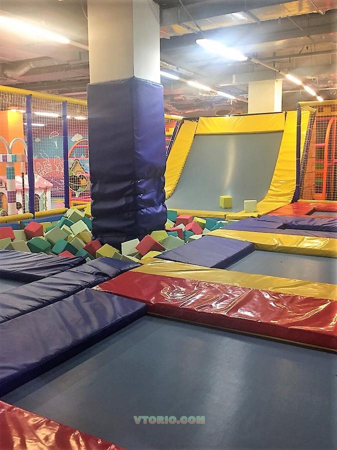 8 батутов, горизонтальные наклонные, поролоновая яма