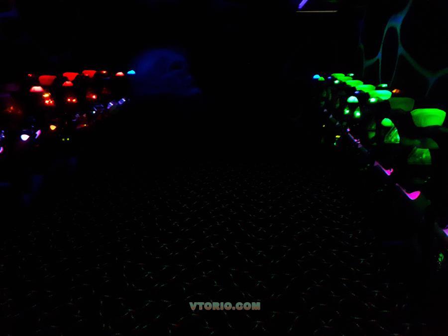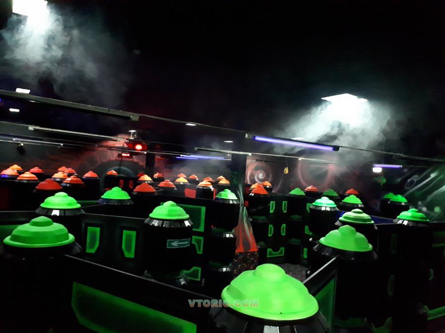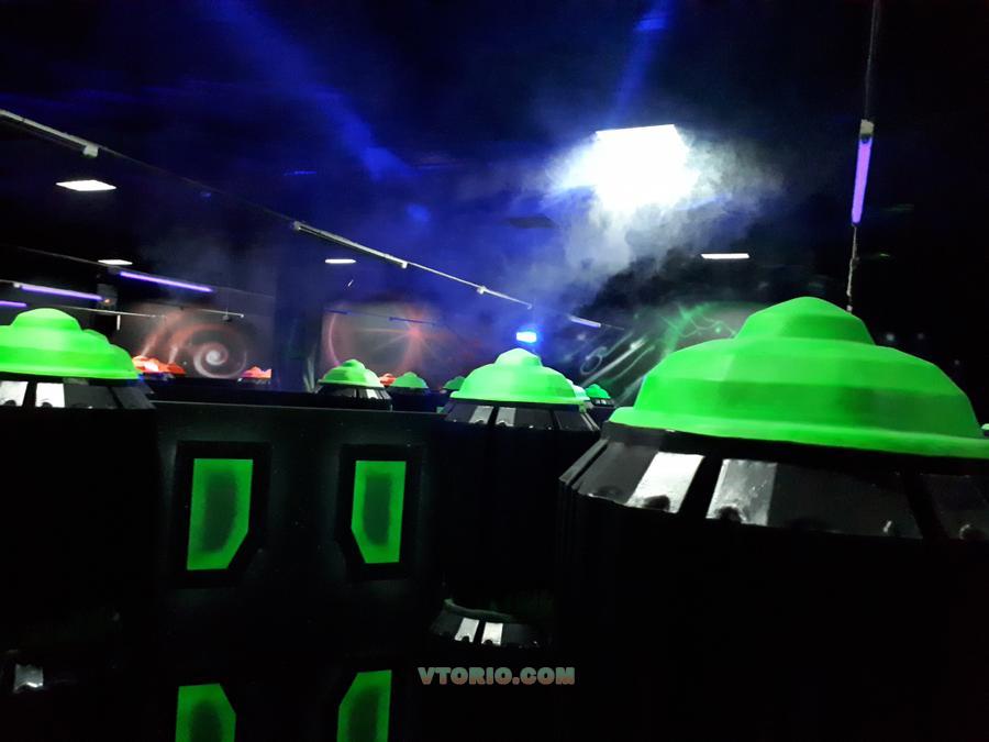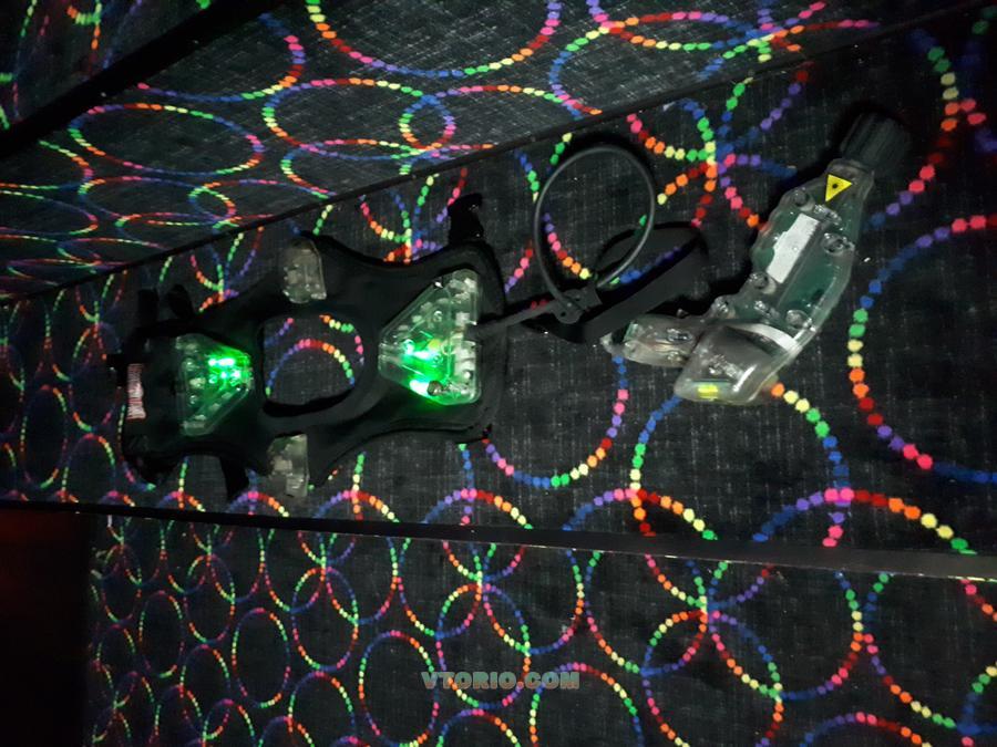 2 базы, 6 мишеней, 20 жилетов (16 в исправном состоянии) ПК с программой, декорации, уф лампы, дым машина, лазерные проекторы.