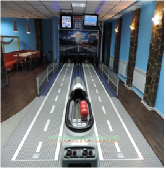 Низкие затраты на техобслуживание. За счет чего? Во-первых, на дорожках мини-боулинга не используется масло. Во-вторых, практически отсутствуют сбои в работе пинспоттера TMS, ведь струнные пинспоттеры TMS содержат минимум трущихся частей; их конструкция проста и надежна.Highway 66 – это компактный аттракцион, который легко разместить практически в любом месте (торгово-развлекательные комплексы, кинотеатры, кафе, рестораны, частный сектор, детские развлекательные центры, кинотеатры и т.д.) и настоящее открытие в сфере развлекательного бизнеса. Длину установки можно выбирать от 12 метров до 16 метров 40 сантиметров, ширина двух дорожек 2 метра 80 сантиметров.десятикегельной игры, с тем отличием, что игровое пространство составляет 66% от профессионального боулинга.