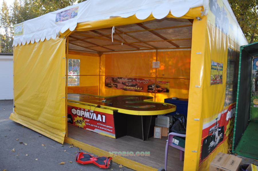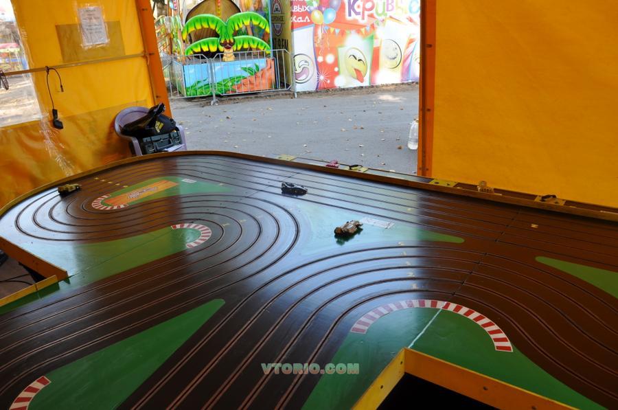 Гонки управляемых моделей по специальной трассе. Пульт, напоминающий ручку пистолета, имеет всего одну кнопку, нажимая её, игрок командует - “газ”, при отпускании - модель останавливается. Модель поворачивает сама, но на поворотах необходимо регулировать скорость, чтобы модель не ушла в занос и не вылетела с трассы. Победителем считается тот, чья модель проехала больше кругов за время заезда и показала лучшее время круга. Электронное табло показывает, сколько кругов проехал участник и сколько посетителей было за день. Причина продажи - закрытие парка на реконструкцию до 2022 года. В комплекте специально выполненный павильон под этот аттракцион закрывающийся на замок.