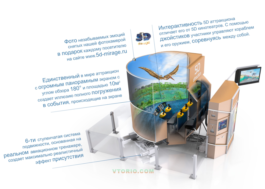 Уникальный 5D аттракцион в ТЦ МЕГА Продается без места. Аттракцион с Максимальным эффектом присутствия, который достигается за счет огромного панорамного (!!!) экрана, качественной 3D графики, стерео очков и объемного звука.