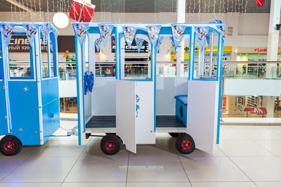 Продается Безрельсовый детский аттракцион "Итальянский паровозик" Доставка по России. Эксплуатировался всего 3 месяца только в ТРЦ. состояние отличное, почти как новый(см. фото). Максимальная скорость движения 5 км/ч Подходит для использования в Парках и ТРЦ. Размеры 6х0,8х1,7, небольшой подходит для удобной эксплуатации в ТРЦ. - аккумуляторный блок в квадроцикле 48/12Ah, аккумуляторный блок в 2-х вагончиках 48/65Аh - В основе электрический квадроцикл. Мощность двигателя 48V /650W (позволяет подниматься по небольшому уклону) - Время работы от 7ч на одной зарядке. - Паровозик заряжается от обычной розетки. - Покраска качественный лакокрасочный материал: итальянская порошковая краска.
