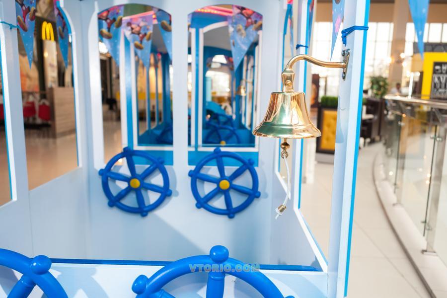 Размеры 6х0,8х1,7, небольшой подходит для удобной эксплуатации в ТРЦ.