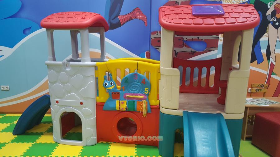 Пластиковый замок с башнями производства "Авира" с лестницей и горкой. Размер 3×1.78×1.70 м.