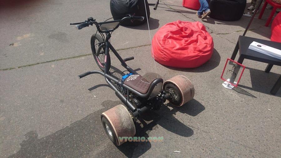 Рама сварена из бесшовной трубы марки ст20 д-40мм, которую используют в каркасах безопасности раллийных и дрифт авто. Она крайне прочная и на 40% легче обычной трубы. Покрытие полимер. Вес всей машины менее 50 кг. Сиденье из качественного немецкого материала для мотосидений. Водонепроницаемый, износостойкий и с защитой от выцветания на солнце. Двигатель 1000Вт, 60V Редуктор со осями и гидравлическими тормозами от электротрайка citycoco. Передняя вилка bmx. Аккумулятор 14Ач, 60V Запас хода расчётный 80+км. Из теста: на максимальных оборотах нон стоп заряда хватает больше 2-х часов непрерывного использования. Время полной зарядки аккумулятора 7часов.