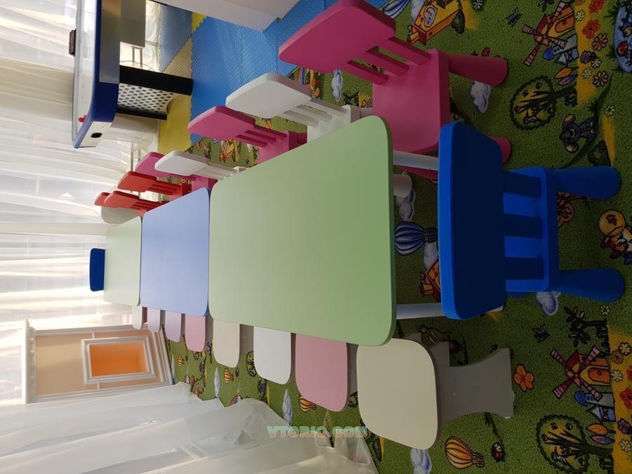 Мебель для входной зоны, делали под заказ: стойка администратора универсальная разборная, можно ставить с любой стороны, зона для родителей, детские шкафчики для одежды, место для переодевания детей, 2 длинные тумбы с полками под разное оборудование