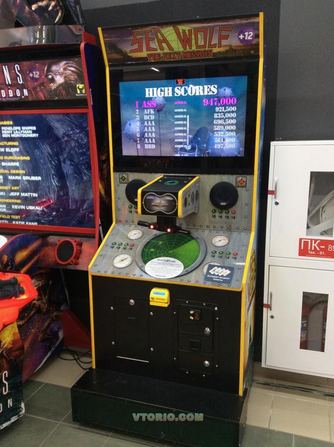 Целевой возраст: 5 Вес: 213 кг Размеры (ШхГхВ): 84 x 191 x 178 см. Видео-редемпшн,цель игры - поразить торпедами вражеские корабли. Новинка 2009 - Sea Wolf: The Next Mission. Новая версия предлагает семь уровней игры. Игра вышла в усложнённом варианте. Теперь задача игрока не только сбить вражеские корабли, но и выжить, поскольку противник «встречает» игрока ответной атакой. Аппарат выпускается в 2-х модификациях - для игры сидя и стоя.